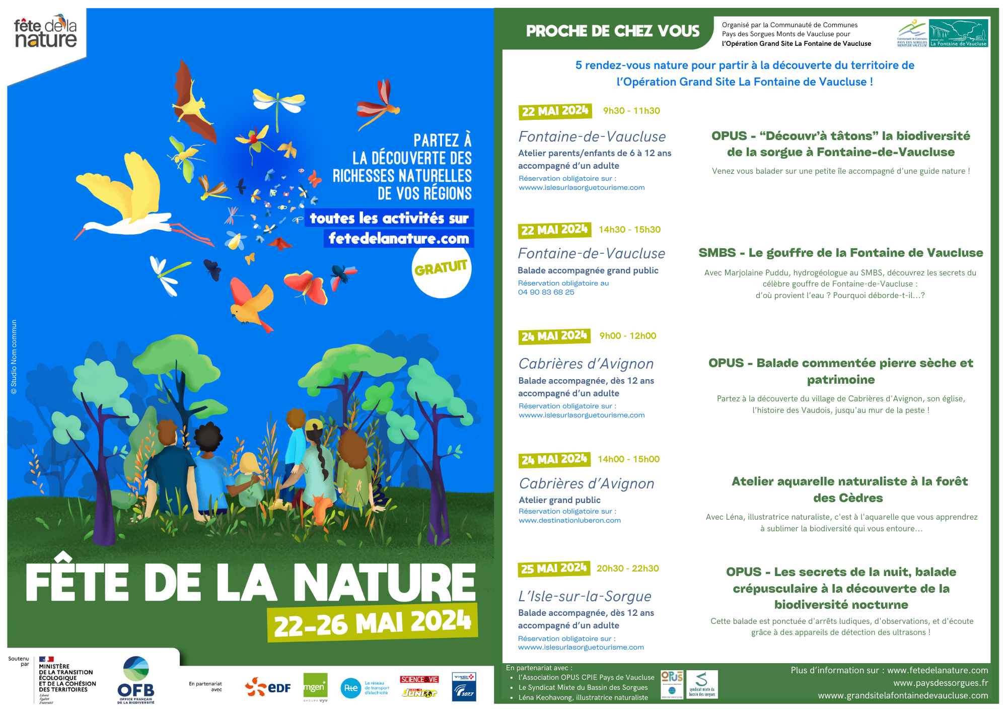 Du 22 au 26 mai, partout en France, des milliers d’animations sont proposées aux Français pour les inviter à se (re)connecter à la nature. Le plus grand événement en France consacré à la nature sera de retour en mai pour une 18e édition riche en promesses et découvertes, toujours au plus près de la nature.