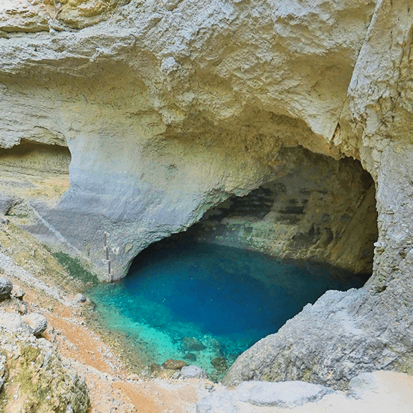 La source d’eau vert émeraude est classée parmi les plus importantes exsurgences du monde. Le gouffre d’où elle s’écoule, est situé au pied d’une falaise abrupte de 230 mètres.