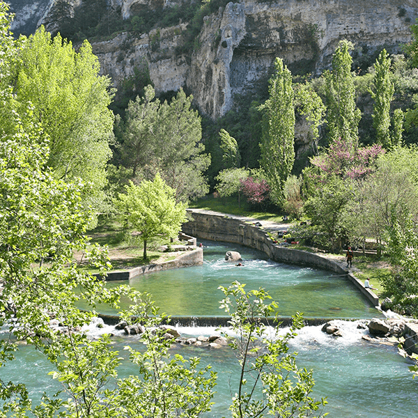 Toute l’année, les sources secondaires alimentent une rivière, la Sorgue, qui s’écoule sur 30kms et forme un réseau hydraulique de bras de Sorgues sur l’ensemble de son parcours.